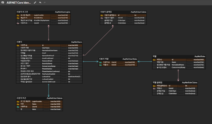 ASP.NET Core Identity 생성 테이블 (erdcloud.com)